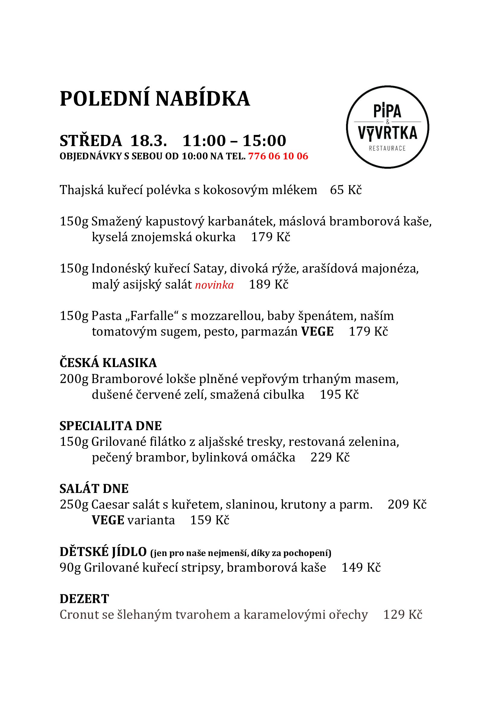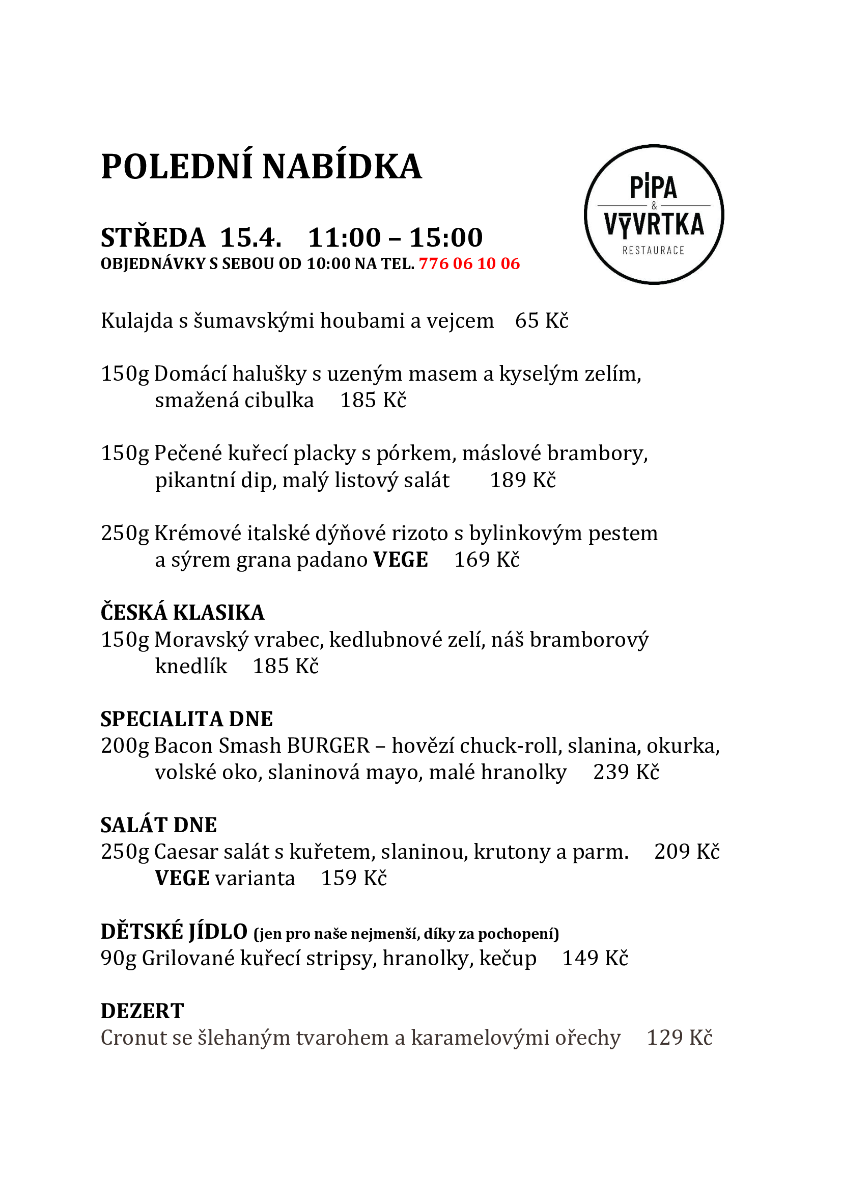 Možnost rezervace stolu a objednávky jídla s sebou.